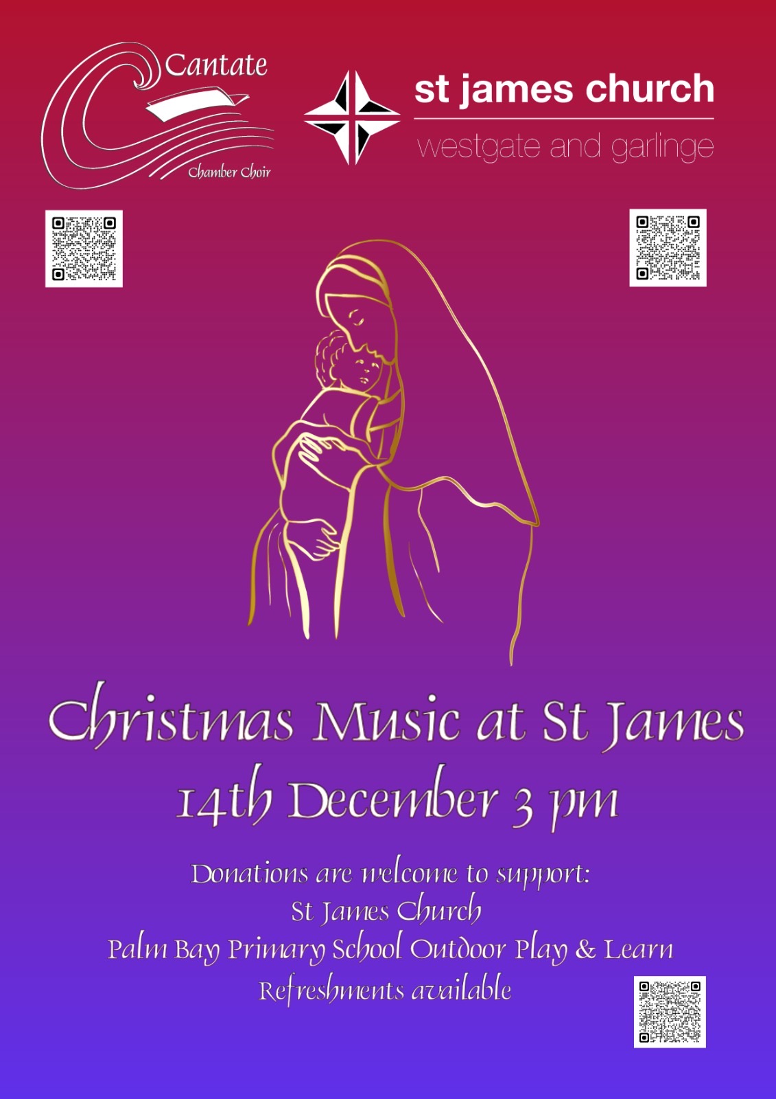 Next concert14th December 202515:00St James Westgate and GarlingeDonations gratefully received.All of the proceeds are in benefit of St James' and Palm Bay Primary School Outdoor Play & Learn.